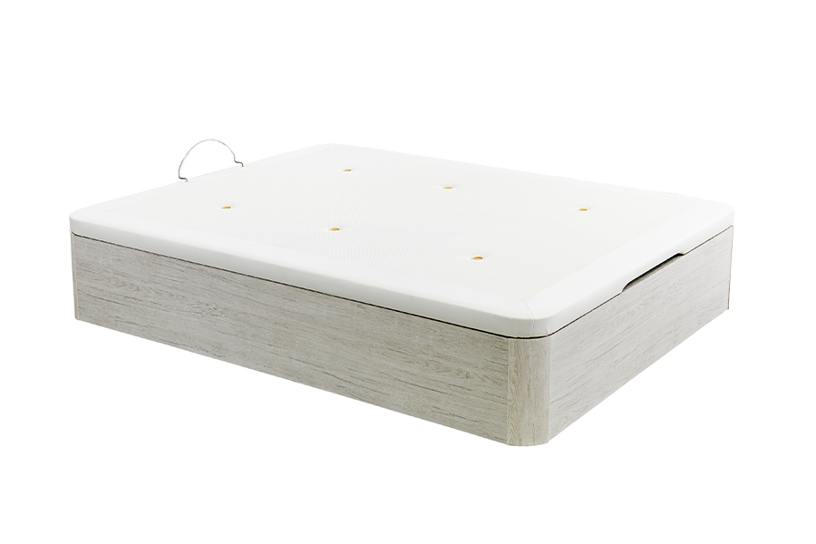 - Tapa superpuesta tapizada con contorno en polipiel y tejido 3D para mayor aireación del colchón.
