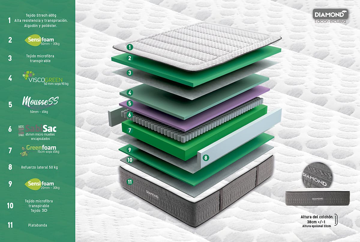 Este colchón está diseñado para utilizarlo por ambas caras, pues los componentes que aportan confort, adaptabilidad, y termorregulación están predispuestos a ambas caras.