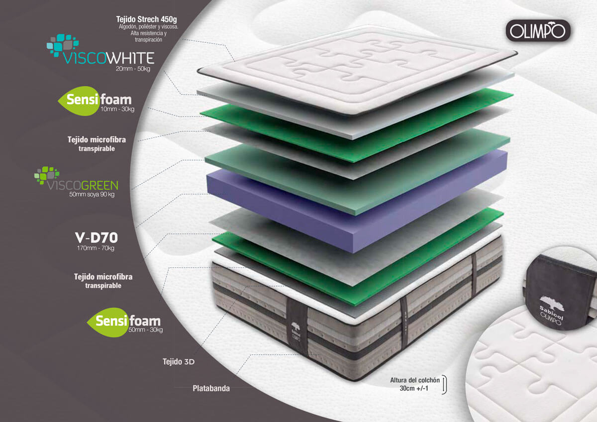 Es una línea de espumas viscoelásticas, que se distinguen por su estructura celular abierta. Esta tecnología facilita la permeabilidad del aire y de la humedad. Densidad 50kg/m3