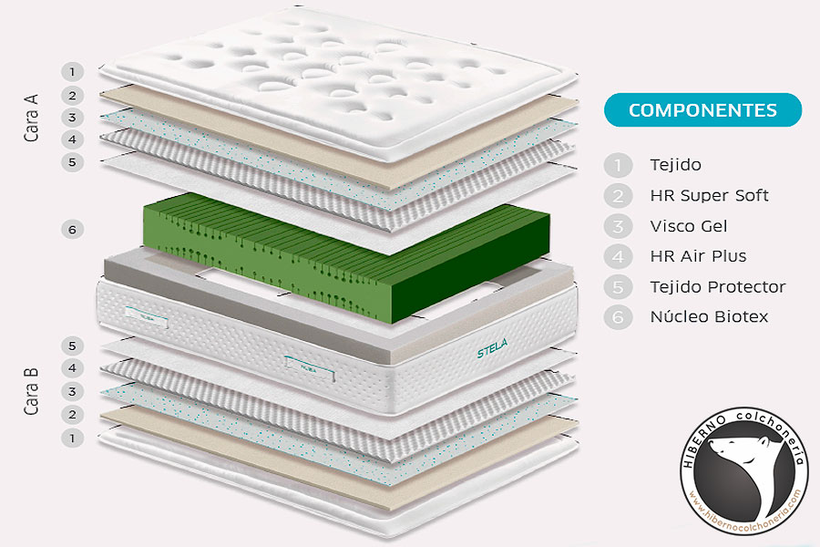Este colchón está diseñado para utilizarlo por ambas caras, pues los componentes que aportan confort, adaptabilidad, y termorregulación están predispuestos a ambas caras.